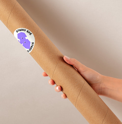 Your posters arrive wrapped in acid-free tissue paper and are packed in a recycled cardboard tube, sourced from a local manufacturer in the UAE. We use durable plastic end caps - a small but necessary detail to ensure your artwork arrives in perfect condition. Our packaging is minimal and eco-conscious, designed to protect your art while reducing waste wherever possible.